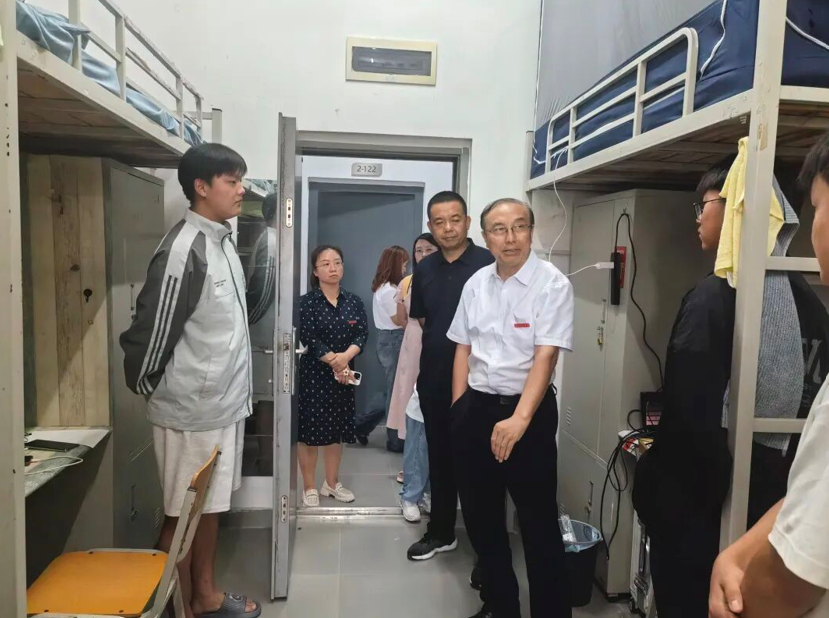 随后,院领导前往7栋女生宿舍进行交流。他从同学们的家乡聊到未来的学习意向,认真倾听每个人的想法,并为她们详细讲解了相关专业的发展前景,建议她们可以学习四年+工作五年的职业规划,并再次提醒大家合理安排时间,将游戏时长控制在每日一小时之内,劳逸结合、专注学习。