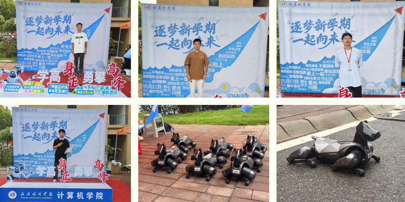 计算机学院的新生咨询处更是充满惊喜与趣味。这里不仅为每位前来咨询的新生准备了清爽解渴的新鲜水果茶,驱散初秋的燥热,还精心设置了互动抽奖小活动,丰富的小礼品让现场氛围愈发热烈。一旁的签名墙上,更是热闹非凡 —— 除了新生们用笔墨留下自己的名字,写下对未来的期许,学院自主研发的机械狗与机器人也 “闪亮登场”,它们灵活地挥舞着 “手臂”,仿佛在向新生们热情招手,独特的科技元素让新生们直观感受到了计算机学院的专业特色与创新活力。