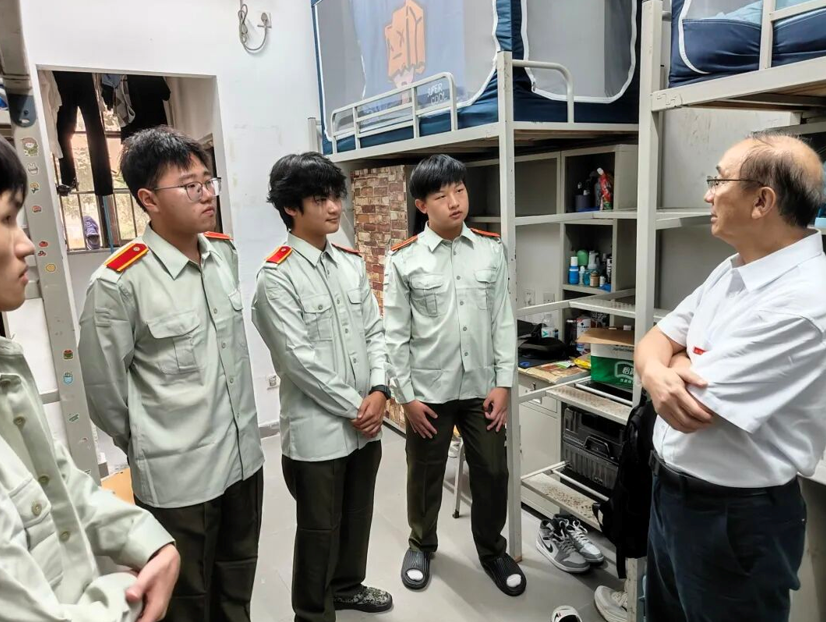 黄院长先行来到2栋男生宿舍,与新生亲切交流。他细致地询问每一位同学来自哪里,耐心了解大家的入学适应情况,并给予专业学习建议。交流中,黄院长重点叮嘱,希望新生们每日玩游戏的时间不超过一小时,并且相互监督、共促共进。