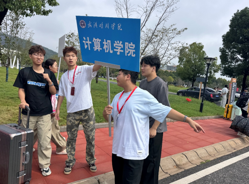 校园里处处洋溢着热闹的气息,身着志愿服的学长学姐们穿梭在熙熙攘攘的人群中,成为迎新现场最温暖的风景线。他们主动接过新生手中沉甸甸的行李,耐心指引报到路线,细致解答关于校园生活的疑问,用最饱满的热情和最贴心的服务,让初来乍到的新生们瞬间感受到了晴川大家庭的温暖。