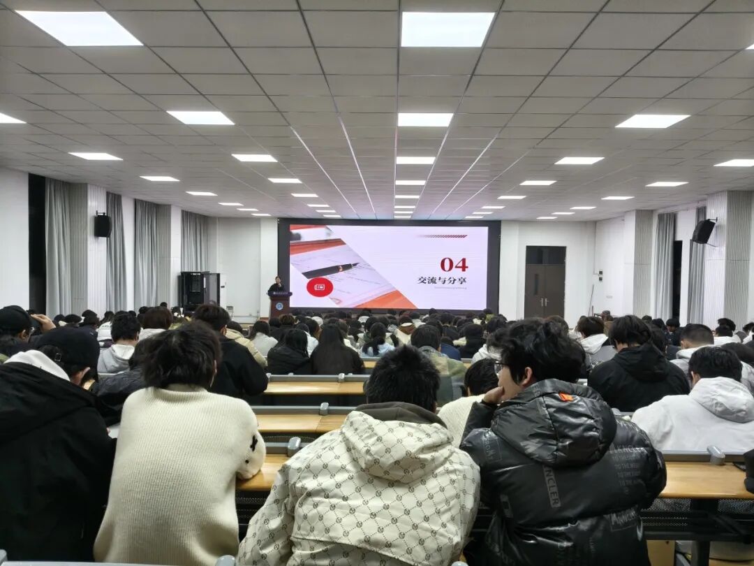 学长学姐们的分享干货满满,台下同学认真聆听,不时提笔记录要点。