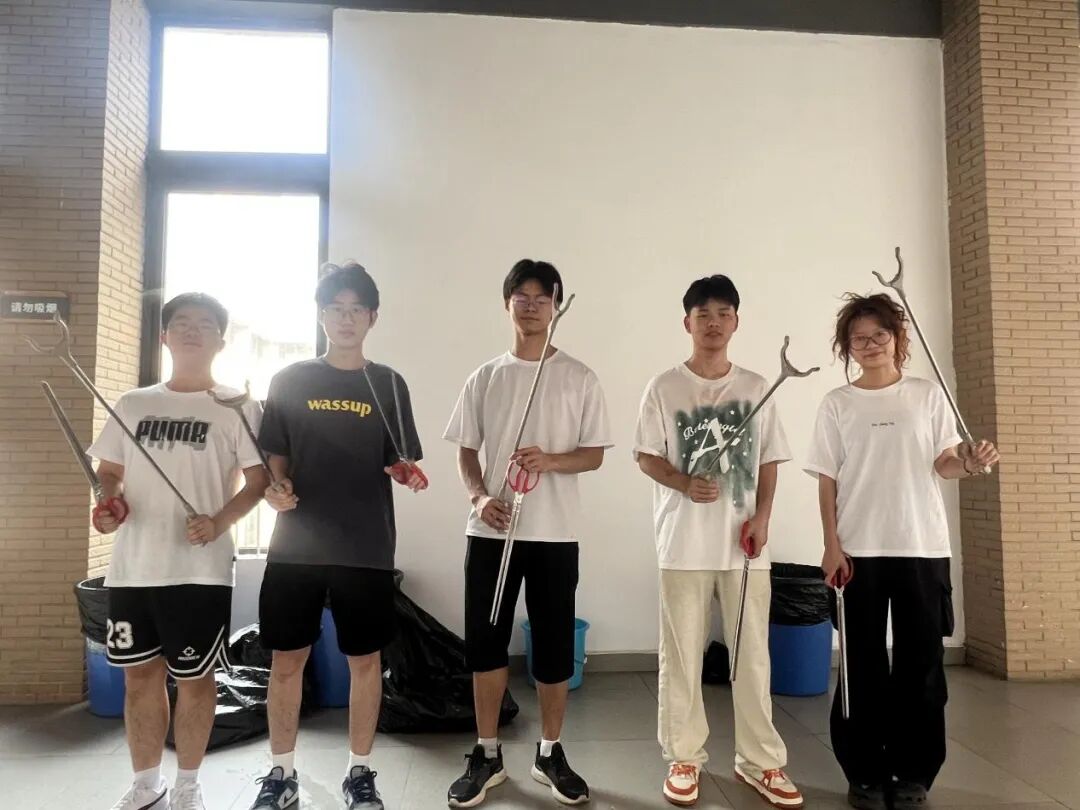 活动开展前,支部已提前筹备妥当夹子、分类垃圾袋等清洁工具,并结合教二楼宇公共区域特点制定分工方案,将 6 名志愿者分为 2 组,一组负责特定楼层的楼梯间、走廊角落、窗台及教室门口等易留存烟头的区域进行清理。二组负责对公共区域的烟头及卫生进行清扫。下午 13:30,志愿者们准时在教二楼下集合,领取工具后迅速前往各自负责区域,有序开展清理工作。过程中,大家弯腰细致排查,用夹子将散落的烟头、纸屑等杂物逐一夹起放入垃圾袋,即使是缝隙中的细小烟头也不放过;