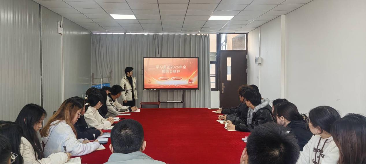 接着乐涛发同志带领大家学习贯彻2026年全国两会精神。他从科技创新、数字经济、教育强国等关键词入手,生动传达了国家发展新质生产力的紧迫要求,激励支部党员把握时代机遇,将专业学习与国家战略需求紧密结合,在科技自立自强中展现高校学子的担当。