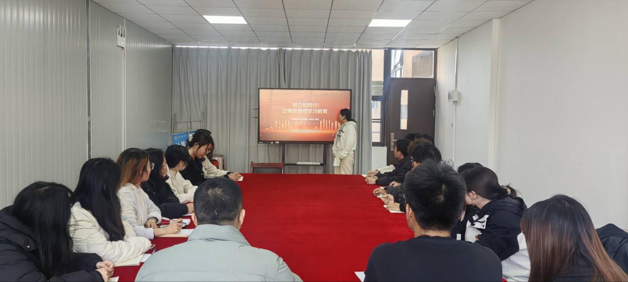 最后,陈猛老师借此契机专题开展政绩观学习教育。他指出,对学生党员而言,政绩观绝非空泛口号,而是体现在日常言行与服务奉献中。一要树牢实干政绩观,以实实在在的行动积累“微成绩”;二要树牢服务政绩观,真正做到“功成不必在我,功成必定有我”。陈猛老师勉励全体党员积极主动作为,以身作则,树立正确的政绩观。