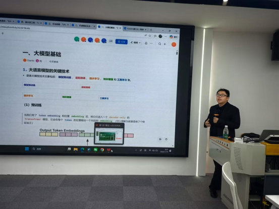 李祖超副教授深耕自然语言处理、多模态机器学习与建模等领域,在语言理解与结构解析、机器翻译等方向斩获多项国际领先竞赛成果,更荣获百度学术2021年人工智能全球华人新星百强称号,深厚的学术造诣与丰富的实战经验为培训质量保驾护航。授课过程中,李教授结合前沿技术动态与自身研究心得,既系统拆解大模型入门知识、本地部署与控制等基础内容,又深入讲解检索增强生成(RAG)、大模型微调(Fine-tuning)的数据准备与训练实战,以及智能体(Agents)与综合应用等核心进阶模块,内容兼具理论深度与实践价值。