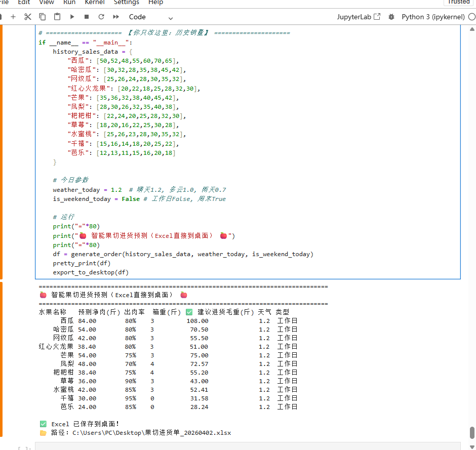 图为团队编写的进货预测系统